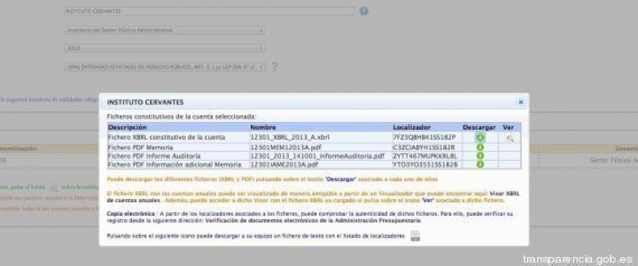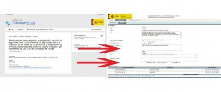 En este ejemplo, al pinchar en el enlace sobre un contrato de restauración de un monasterio en Toledo, nos remite a la página del Ministerio de Hacienda y Administraciones Públicas.
