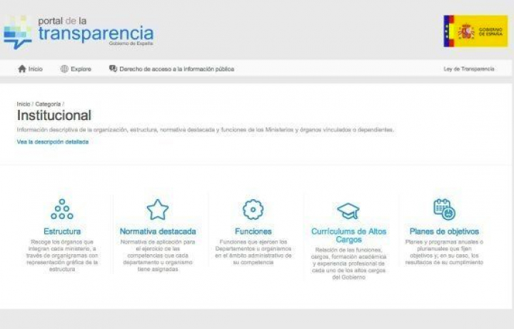 La web contiene 530.000 registros accesibles de información y más de 30.000 informaciones individuales relativas a currículums, convenios o subvenciones que se han incorporado en estos últimos días. Al entrar en la web, aparte del buscador de información, se pueden visualizar tres iconos: uno relativo a información institucional, otro sobre información normativa y un tercero sobre información económica. También hay enlaces a las webs de La Moncloa, el INE y otras páginas oficiales.