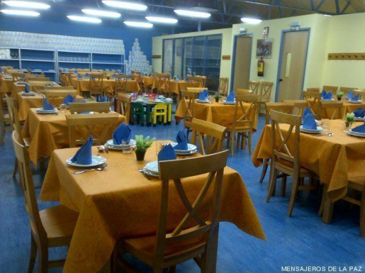El comedor de Villaverde de Mensajeros de la Paz, que también cuenta con mesas para niños.
