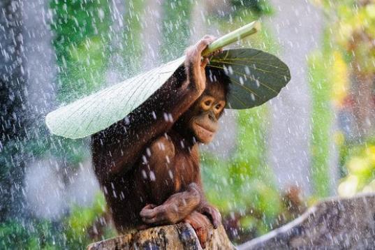 Título de la imagen: Orangutan in The Rain (Orangután en la lluvia)
