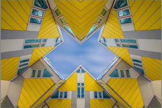 Descripción de la imagen: Las casas cubo (en holandés: Kubuswoningen) son un innovador co...