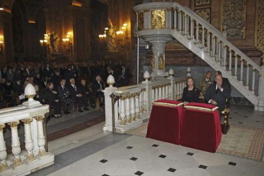 Unas 700 personas llenan el templo, donde se ha instalado un sitial, a la derecha del altar mayor, para que desde allí don Juan Carlos y doña Sofía puedan presidir la ceremonia.