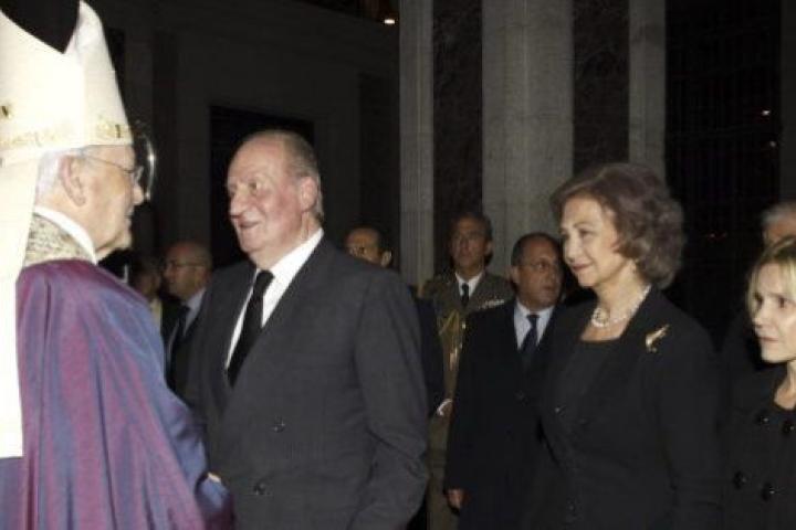 Los reyes Juan Carlos y Sofía han presidido este lunes en la basílica madrileña de San Francisco el Grande el funeral en memoria de la duquesa de Alba oficiado por el cardenal emérito de Sevilla, Carlos Amigo.