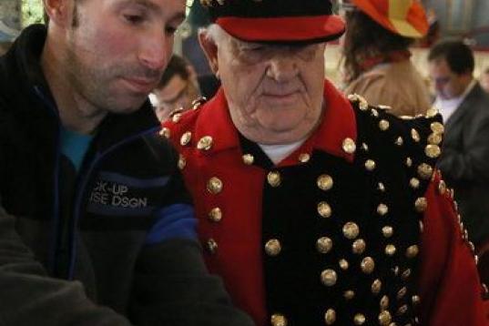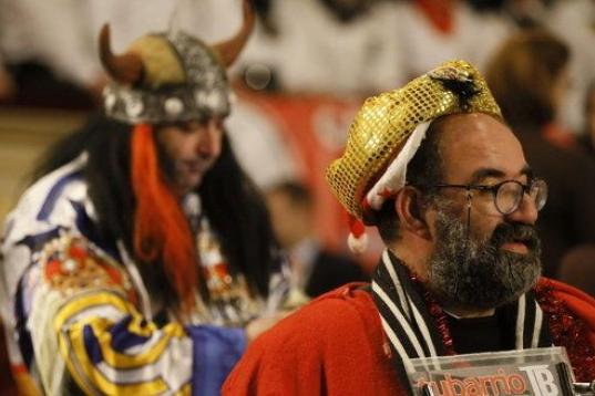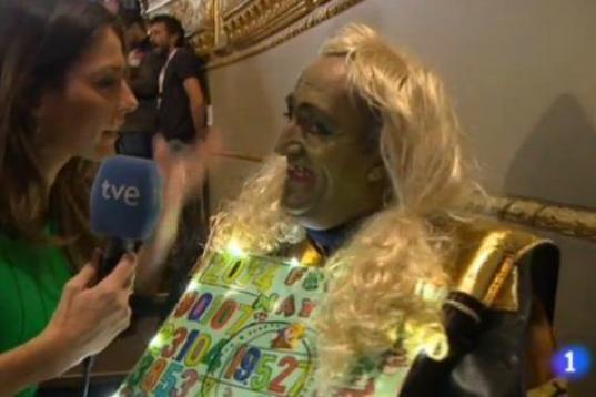 Un duende, un vikingo y otros disfraces que no somos capaces de catalogar se han paseado este lunes por el Teatro Real de Madrid para seguir el sorteo.