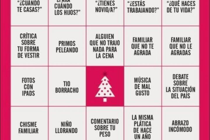 Si sabes de qué va la cosa, entenderás este juego. Lo propone en su libro Cinismo ilustrado el autor mexicano (de ahí expresiones como "plática" o "platillo") Eduardo Salles. El libro ya está a la venta en México, y saldrá en España a principios de 2015. En el Tumblr de Salles, del mismo nombre, aparece este bingo para la cena navideña (cedido en esta ocasión a El Huffington Post).