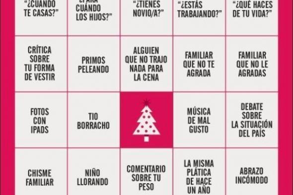 Si sabes de qué va la cosa, entenderás este juego. Lo propone en su libro Cinismo ilustrado el autor mexicano (de ahí expresiones como "plática" o "platillo") Eduardo Salles. El libro ya está a la venta en México, y saldrá en España a principios de 2015. En el Tumblr de Salles, del mismo nombre, aparece este bingo para la cena navideña (cedido en esta ocasión a El Huffington Post).