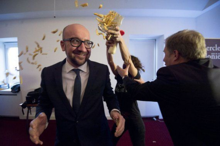 Charles Michel, primer ministro belga, atacado con patatas fritas y mayonesa