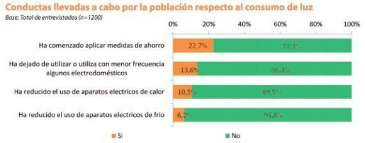A menores ingresos, las personas por encima de los 65 años se las idean para ahorrar hasta el último céntimo posible. El estudio asegura que el 23,2%ha modificado sus conductas respecto a la luz, el 13,6% ha dejado de utilizar o utiliza menos algunos electrodomésticos, de mayor consumo y el 10,5% dice haber reducido el uso de aparatos eléctricos de calor y el 6,2%, de frío.