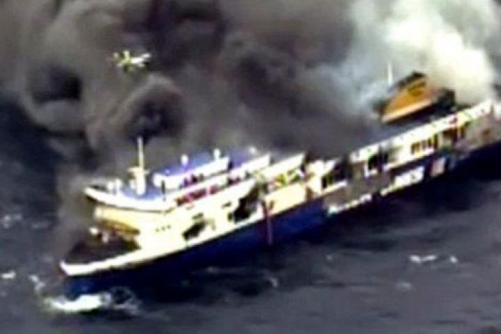 El fuego a bordo se declaró en la madrugada del domingo, presumiblemente en el garaje, que albergaba 222 vehículos, por motivos aún sin esclarecer. Medios italianos informaron de que al parecer el incendio en el ferry casi se había extinguido antes de la media noche, puesto que no se avistaban llamas, aunque el humo invadía el buque.