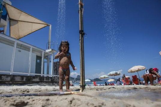 Una niña se refresca en la playa carioca de Copacabana (Brasil).