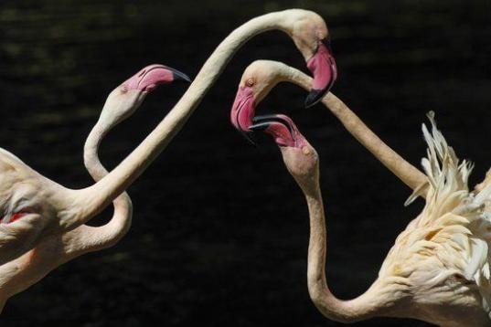 Flamencos en una reserva natural en Panyu, Guangdong (China).
