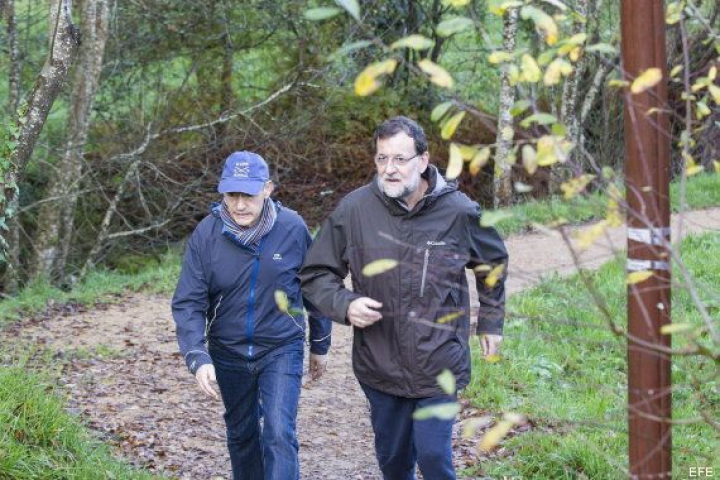 Mientras, el presidente del Gobierno, Mariano Rajoy se ha desplazado a las Rías Baixas (Pontevedra) en donde pasa unos días de descanso junto a su familia. En esta foto le puedes ver caminando por la Ruta da Pedra e da Auga, en Ribadumia, que lleva al monasterio de Armenteira, acompañado de José Benito Suárez, presidente de la Autoridad Portuaria Marín-Pontevedra y marido de la ministra de Fomento Ana Pastor.