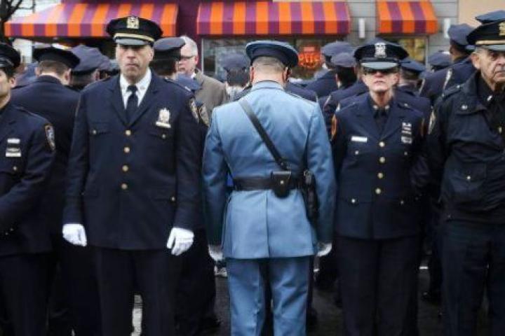 Sin embargo, hoy algunos agentes desoyeron las recomendaciones de su jefe, puesto que, según los sindicatos de policía, el apoyo del alcalde a las manifestaciones contra la brutalidad policial favoreció el clima de crispación que llevó a Brinsley a asesinar a los dos policías como venganza por la muerte de Eric Garner y Michael Brown, de raza negra, a manos de policías de raza blanca.