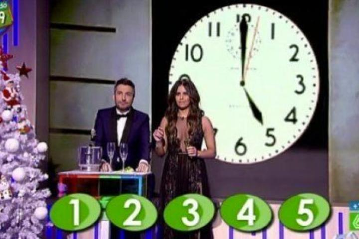 Para que los andaluces terminaran las "campanadas interruptus" que tuvieron la noche de fin de año, Frank Blanco y Cristina Pedroche han dado las cinco de la tarde con cinco uvas y con el mismo atuendo que vistieron en Nochevieja. Sí, Pedroche se ha vuelto a poner el vestido negro transparente que ya había lucido la modelo Malena Costa en los últimos premios GQ.