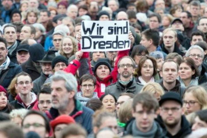 La manifestación -respaldada por el primer ministro del "Land" (estado federado) de Sajonia, el conservador Stalislaw Tillich, y organizada por grupos cívicos y colectivos religiosos- discurrió ante la Frauenkirche, la iglesia más emblemática de Dresde, destruida por los bombardeos de la II Guerra Mundial y reconstruida con donativos de todo el mundo.