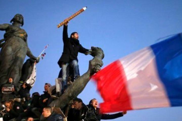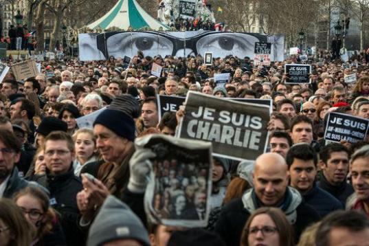 El lema 'Je suis Charlie' ('Yo soy Charlie') ha dominado las pancartas y carteles exhibidos por los manifestantes que se encontraban en el recorrido entre la plaza de la República y la plaza de la Nación, en el este de la capital. Los gritos de "¡Charlie, Charlie!", han sido constantes.