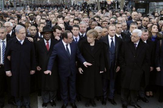 Muestra del carácter único de esta manifestación fue que caminaron a apenas metros de distancia el primer ministro israelí, Benjamin Netanyahu, y el presidente palestino, Mahmud Abás.