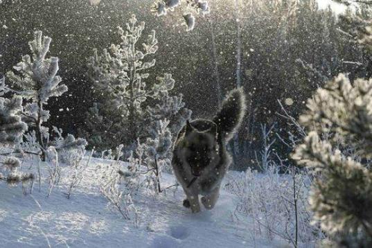 Un perro corre entre la nieve durante una gran nevada en Siberia, a temperaturas de -22 ºC.