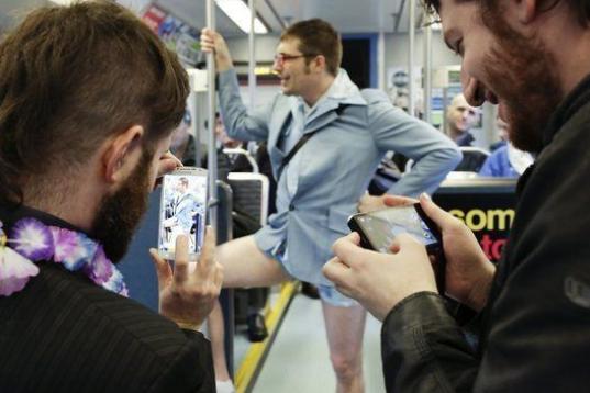 Luke Walker, de Seattle (EEUU), posa en el 'Día sin pantalones en el metro'.