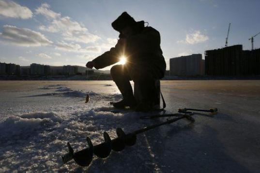 Un pescador en el río Yenisei helado, en la ciudad siberiana de Krasnoyarsk.