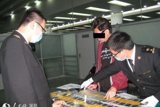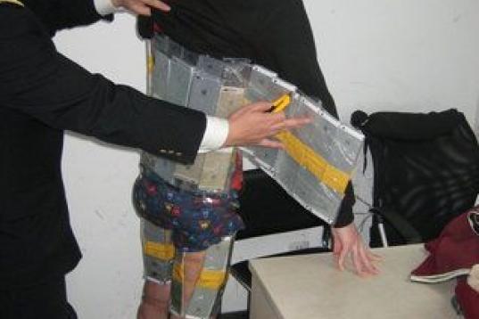 Los agentes de aduanas se dieron cuenta de que el tipo tenía unos andares y una pose cuando menos extraña, según el People's Daily. Viendo las fotos que tomaron, no sorprende que sus movimientos se vieran afectados.
