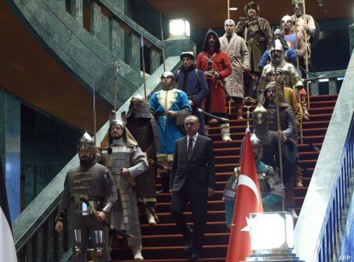 La participación de dieciséis soldados vestidos con uniformes o armaduras históricas en la última recepción oficial del presidente turco ha causado extrañeza en Turquía y protagoniza numerosas portadas de la prensa local.