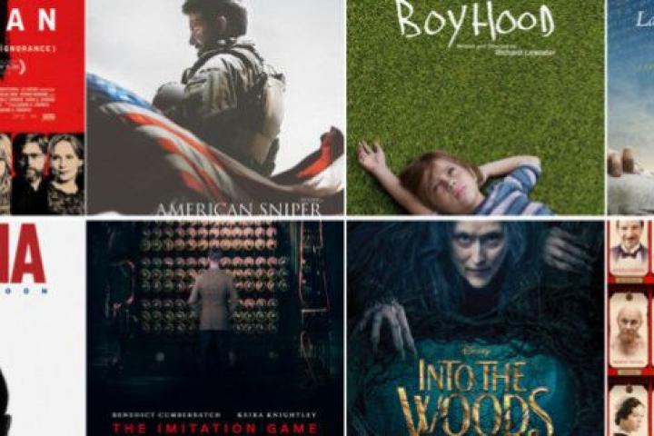 Las películas que más nominaciones acaparan son Birdman y El Gran Hotel Budapest, con nueve cada una. The Imitation Game tiene ocho, Boyhood y El francotirador se quedan con seis, y La teoría del todo, Foxcatcher, Interstellar, Mr. Turner y Whiplash con cinco, e Invencible, cuatro. El toque hispano lo da Relatos Salvajes, nominada a la Mejor Película de Habla No Inglesa por Argentina, una coproducción argentina-española de El Deseo, la empresa de Pedro Almodóvar.