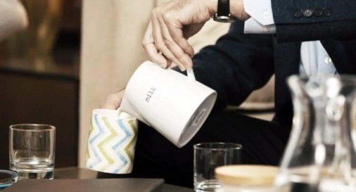 O la taza con la palabra "milk" escrita en un lado...