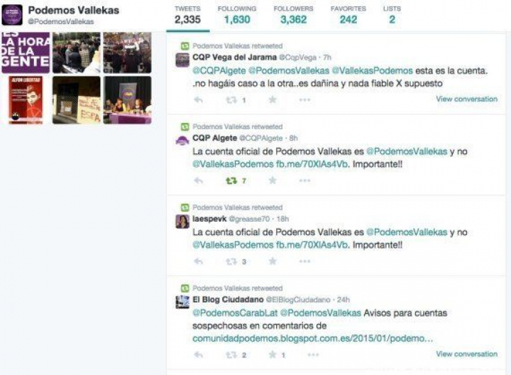 De hecho, la cuenta oficial de Podemos en Vallecas, @PodemosVallekas, también ha advertido de que es falsa.