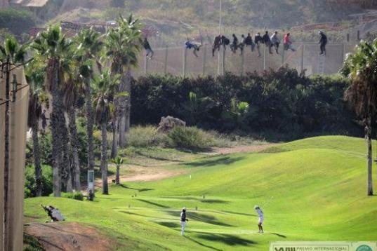 La muestra, inaugurada este martes, ha reunido a los cuatro finalistas y, entre ellos, al ganador José Palazón, que recogió en octubre una instantánea viral llamada "Paisajes desolados", en la que aparecían un grupo de inmigrantes encaramados a la valla de Melilla y dos jugadores de golf practicando el deporte, aparentemente impasibles, al otro lado de la valla.