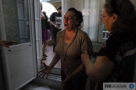 María Isabel Rodriguez Romero llora ante la llegada de la Policía para desahuciarla junto con su familia en Madrid, en septiembre de 2013.