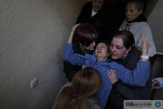 Andrés Kudacki afirma que él hace las fotos para "documentar", pero tiene que "armarse de fuerza" para trabajar mientras la gente está "a punto de perderlo todo". En la imagen, la policía irrumpe en la vivienda de Maria Isabel Rodríguez Rom...