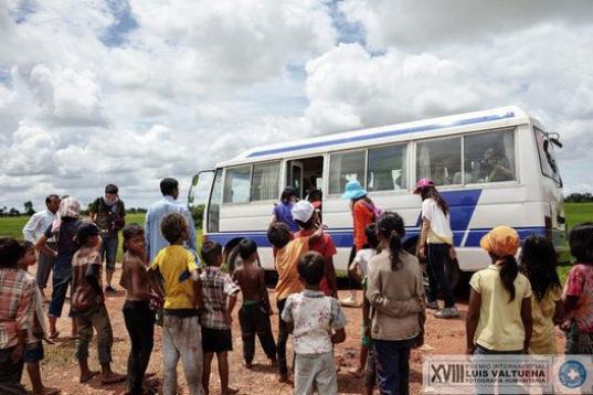 El autobús de turistas se marcha dejando atrás a los niños, a los que les han dado caramelos y con los que se han hecho fotos. Turistas coreanos, ingleses y japoneses visitan habitualmente el basurero de Siem Reap (Camboya).