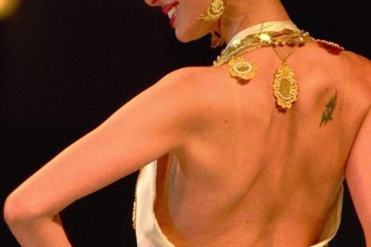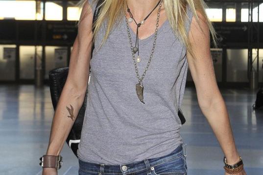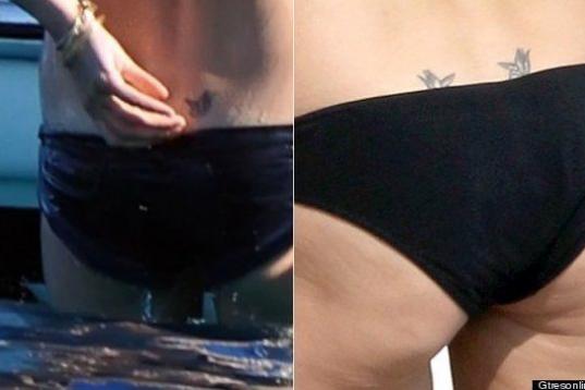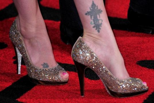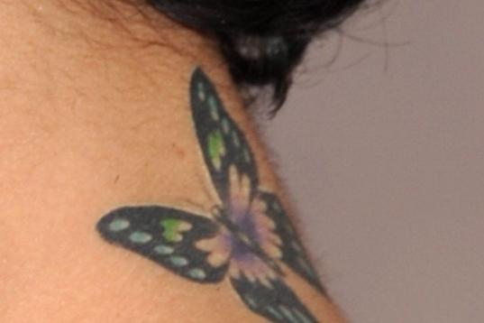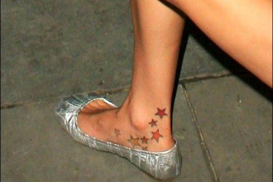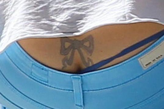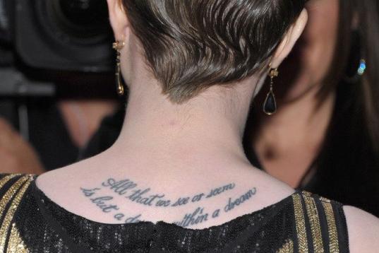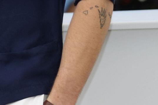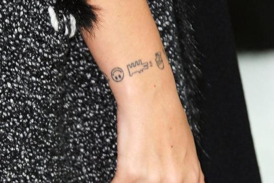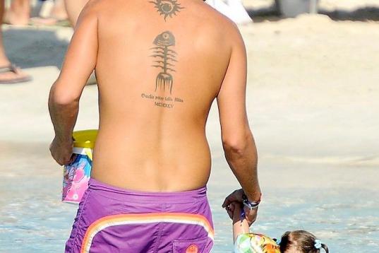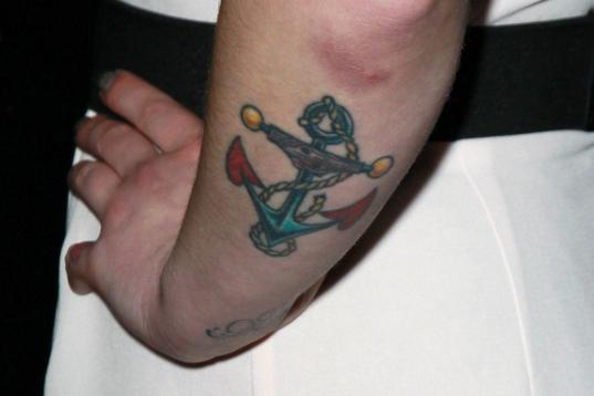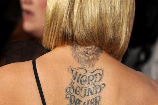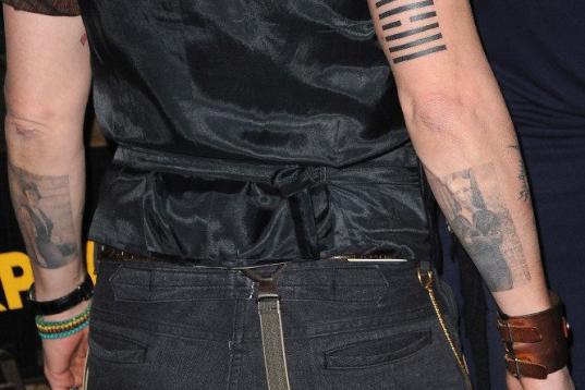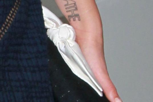 En su brazo se lee en letras negras con florituras la frase en inglés Nothing last forever. El problema está en la concordancia del verbo, al que le falta la ese de la tercera persona del singular, por lo que debería poner Nothing lasts forever (Nada dura para siempre). Se supone que los tatuajes sí duran toda la vida, pero con láser pueden llegar a desaparecer. Prueba de ello es el de Melanie Griffith, que eliminó el nombre Antonio de su brazo tras divorciarse de Banderas.