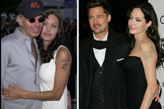 Angelina Jolie: así aprendió la lección de que tatuarse el nombre de un novio no es la mejor opción. Su matrimonio con Bob Thornton duró tres años.