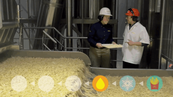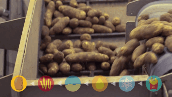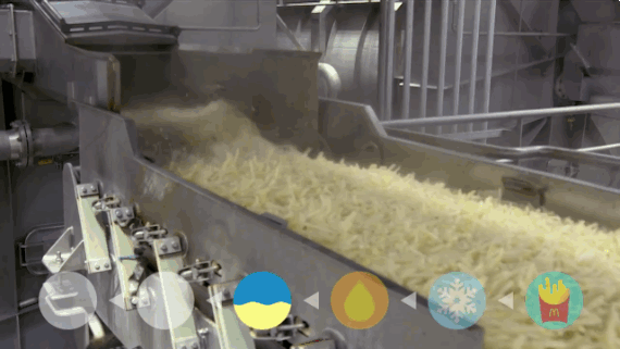 McDonald's plantea el vídeo como si fuera un reportaje en el que se rastrea la cadena de producción desde la mesa del restaurante hacia atrás, hasta llegar a la extracción de la patata del campo. Dan algún dato curioso, como que para cortarlos, los tubérculos pasan por un tubo con un chorro de aire donde son lanzados hacia unas cuchillas a unos cien kilómetros por hora.