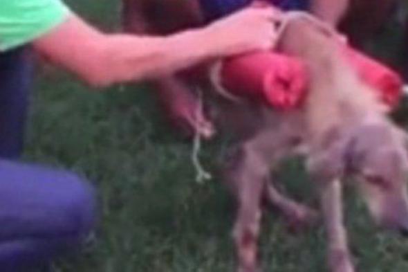 Según informa el DailyMail, el horrible vídeo ha visto la luz esta semana. En él se ve cómo después de un intento fallido, los jóvenes logran el propósito de prender la mecha de los cohetes atados al cuerpo del pobre animal, de unos seis años de edad, indefenso y visiblemente débil y desnutrido.