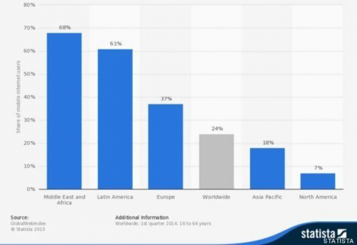 - La penetración de WhatsApp es similar en las distintas regiones del mundo: Según los datos de Statista, la penetración de WhatsApp en el primer trimestre del año pasado fue similar en todo el mundo, con una media de un 24%. A nivel global, en el último cuatrimestre de 2014, el país en el que un mayor porcentaje de usuarios de internet móvil emplearon WhatsApp es Sudáfrica, con un 78% del total, seguido de Malasia (75%), Argentina (74%) y Singapur (72%).