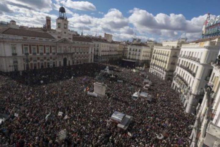 Las imágenes aéreas tomadas en la Puerta del Sol dan una idea de la cantidad de gente que el partido de Pablo Iglesias ha conseguido aglutinar en la capital de España.