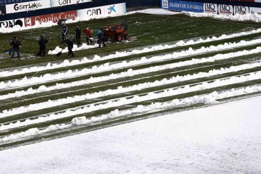Además, el partido que iban a disputar este domingo a las 12.00 horas en El Sadar Osasuna y Real Zaragoza, correspondiente a la vigésima tercera jornada de la Liga Adelante, ha tenido que ser aplazado por la excesiva nieve que cubre el campo pamplonés.