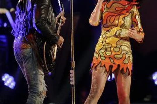 Perry empezó con Roar, el hit de su último álbum, Prism para cuya actuación eligió un look que pretendía imitar una llama. Su aparición en el escenario la hizo sobre un enorme gato montés.