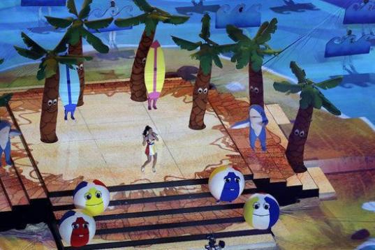 Teenage Dream y California Gurls fueron los siguientes temas. Y en esta parte, el escenario adquirió el aspecto de una playa.