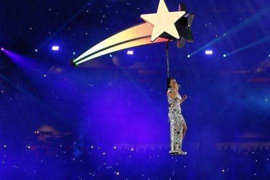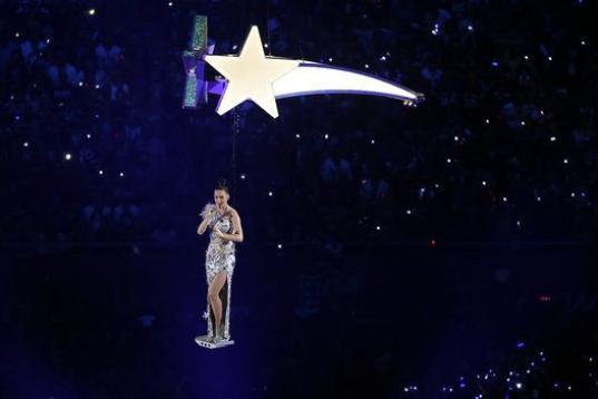 Perry cerró el show del descanso con una emocionante interpretación de Firework, incluyendo un vuelo sobre el público a bordo de una estrella que para muchos se parecía al logo de More you Know, famoso por ser la imagen de las campañas de interés público de la NBC .