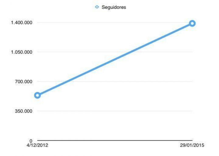 En el segundo se observa el subidón de seguidores de Dani Rovira en Twitter desde 2012. En poco más de dos años, su cuenta ha experimentado un aumento de alrededor de un 280% de followers: