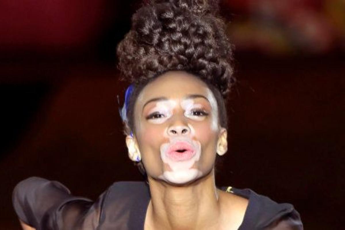 Desigual abrió su desfile del viernes con una modelo a la que ha convertido en la estrella de su campaña. Ella es Winnie Harlow, una joven de 20 años que padece vitiligo desde la infancia, una enfermedad degenerativa que causa una fuerte despigmentación en la piel. Harlow abrió y cerró un desfile en el que las modelos rieron, sonrieron, posaron divertidas, lanzaron besos y chocaron las manos, algo muy poco habitual en las cada vez más serias pasarelas.