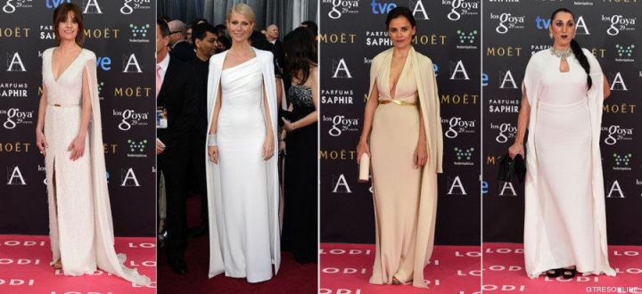 En la lista de parecidos razonables, también ha habido quien ha recordado con sus elecciones a grandes actrices de Hollywood. Uno ha sido el vestido blanco de Tom Ford que Gwyneth Paltrow lució en la ceremonia de los Oscar 2013. Alexandra Jiménez, Elena Anaya y hasta Rossy de Palma recordaban a la protagonista de Shakespeare in love.