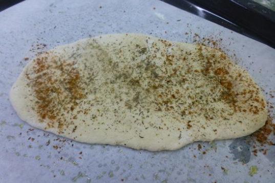 Estirarla (mejor si es casera) sobre la masa de la pizza.