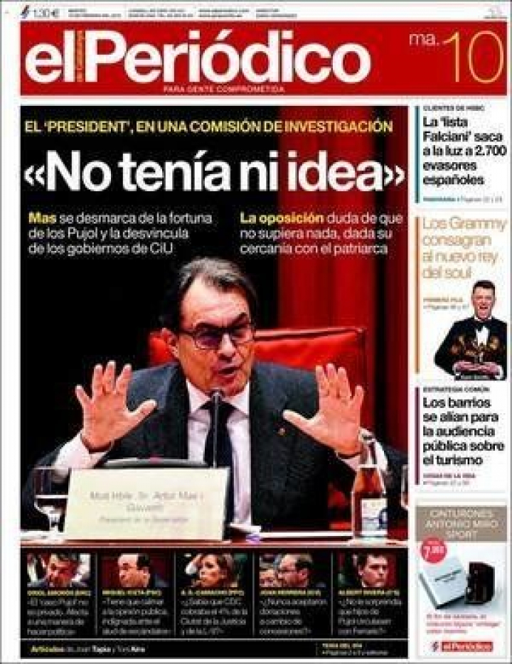 "Mas siempre supo que su padre tenía cuenta en Liechtenstein", resume El Mundo lo dicho por el President, quien, "no tenía ni idea", según resume gráficamente El Periódico de Cataluña. Mientras, La Vanguardia considera que Mas "se distanció de la familia Pujol" y rechazó "todo vínculo suyo, del Govern o de CiU con el dinero oculto por su antecesor". En un editorial, considera que "la impresión que le queda al ciudadano tras la comparecencia es que su utilidad fue limitada", pese a que alguno de los ponentes expresa su incredulidad "ante el hecho de que una persona tan inteligente y preparada como Mas pudiera ignorar tantos y tan graves episodios". Para El País, "Mas no sabía. Debía ser el único" y añade "rodea a Mas una aureola de corrección personal. Ojalá el asunto del patrimonio de su propio padre no le ponga en cuestión".