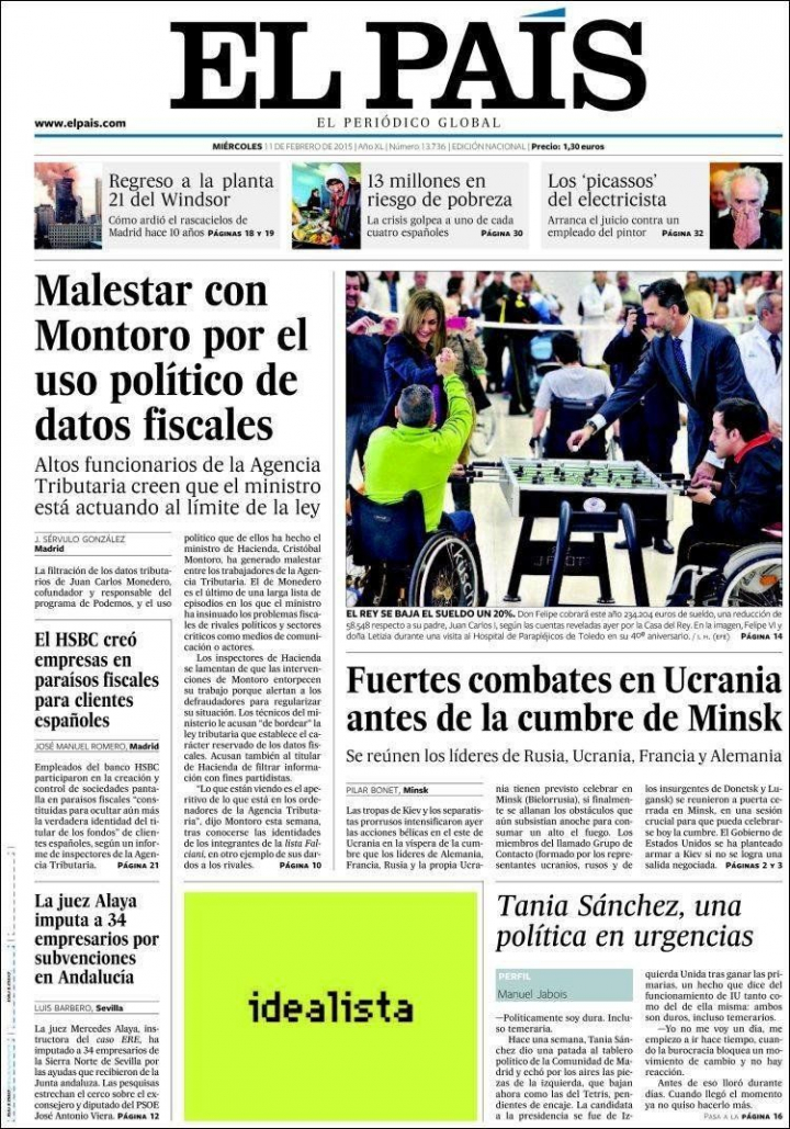 Si el diario Le Monde destaca que los "padrinos" de Al Qaeda, la cadena de patrocinadores que financiaba la organización terrorista de Bin Laden, tenían cuentas; El Confidencial desvela esta mañana que varios familiares de Manuel Prado y Colón de Carvajal, administrador del rey Juan Carlos durante 20 años y fallecido en 2010, tenían cuentas en la entidad. También aparecen trazas del dinero procedente del tráfico de cocaína en España. Además, El País asegura que "HSBC creó empresas en paraísos fiscales para clientes españoles", según la Agencia Tributaria, donde "altos funcionarios no ocultan su malestar con Montoro por el uso político de datos fiscales". A su juicio el ministro entorpece su trabajo y bordea la ley tributaria.