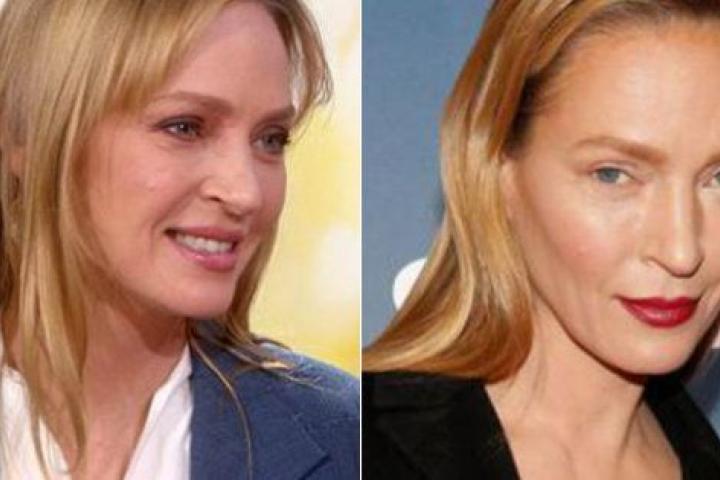 Como explica a la web Troy Surratt, el autor del cambio, entre Uma y el propio maquillador decidieron que querían un look con "más toque de revista de moda que de celebrity". Con ello se refiere a que cambiaron su maquillaje para darle un aspecto especialmente sofisticado, distinto al que suele llevar a diario. "Trabajamos para hacer las cejas mucho más potentes y en un labio muy destacado, con un estilo francés", cuenta Surratt. Para él, esa forma de trabajar las cejas crea "un efecto lifting".